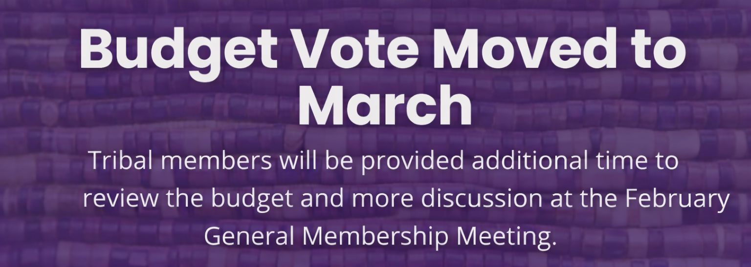 The Mashpee Wampanoag Tribe encourages Tribal members to stay engaged in the FY 2025–2026 budget process, beginning with the continued budget review at the General Membership Meeting on Sunday, February 8.